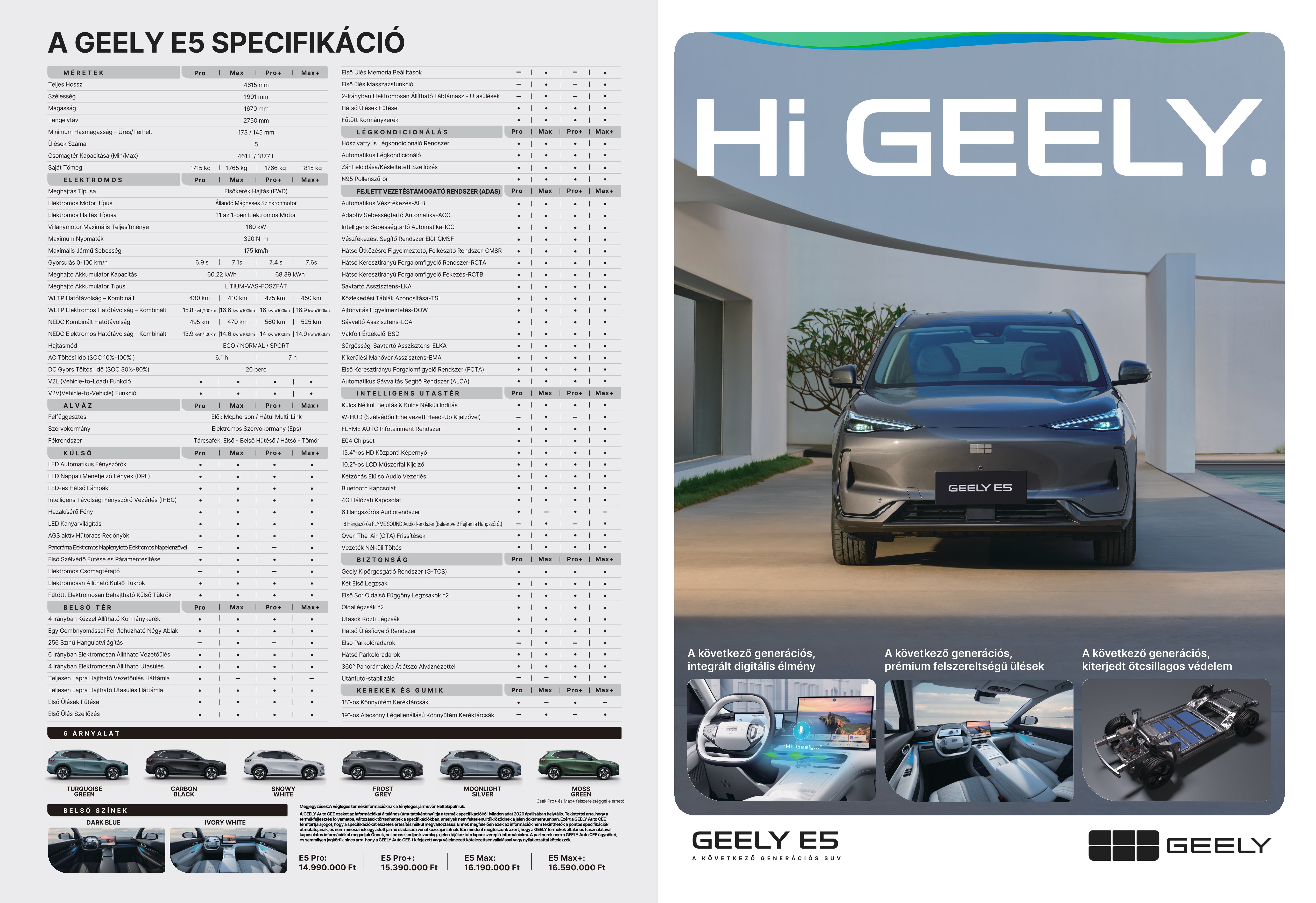 1. A műszaki adatok, az opciók és a rendelkezésre állás piaconként eltérőek lehetnek, és előzetes értesítés nélkül változhatnak. A weboldalon használt képek és videók csak illusztrációs célokat szolgálnak, és olyan opcionális felszereléseket, előgyártási modelleket vagy funkciókat mutathatnak, amelyek az Ön piacán nem elérhetők. A weboldalon található információkból semmilyen jog nem származtatható. A legpontosabb és legfrissebb információkért az árakról, a műszaki adatokról és a rendelkezésre állásról kérjük, vegye fel a kapcsolatot a helyi Geely kereskedővel.